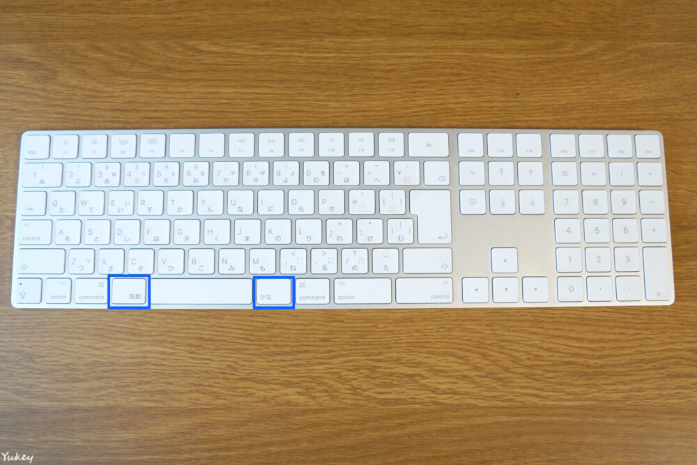 Macではスペースキーの左側に「英数キー」があり、スペースキーの右側に「かなキー」があります。