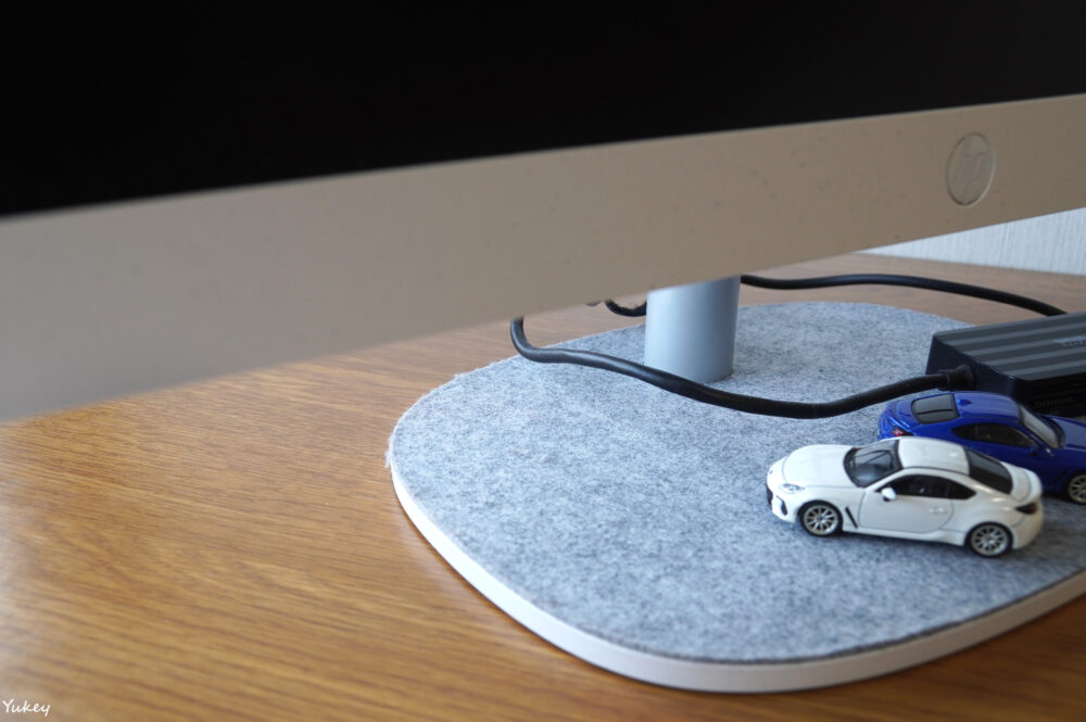 台座の上面にフェルトが貼ってあり(ファブリック仕上げ)、買う前から分かってはいたのですが、やはりホコリがつきやすいです。
